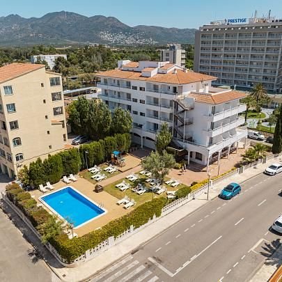 On-site you will find a Mediterranean-style restaurant and bar serving breakfast, light lunches, and evening drinks, with indoor seating and a terrace area. Free Wi‑Fi is available throughout the property, and comfortable guest rooms include air conditioning, private bathroom, and balcony in most categories. Additional amenities typically include luggage storage, daily housekeeping, and optional parking nearby, making Prestige Bay a convenient base for exploring Roses and the wider Costa Brava coastline. Prestige Bay Hotel in Roses, Costa Brava, offers a full range of modern facilities designed for comfort, relaxation, and seaside enjoyment. Guests can unwind by the outdoor swimming pool with sun loungers and parasols, or stroll just a few steps to the nearby beach promenade. The hotel features a bright, spacious lobby, 24-hour reception, and multilingual staff ready to assist with local tips, excursions, and transport arrangements throughout your stay.